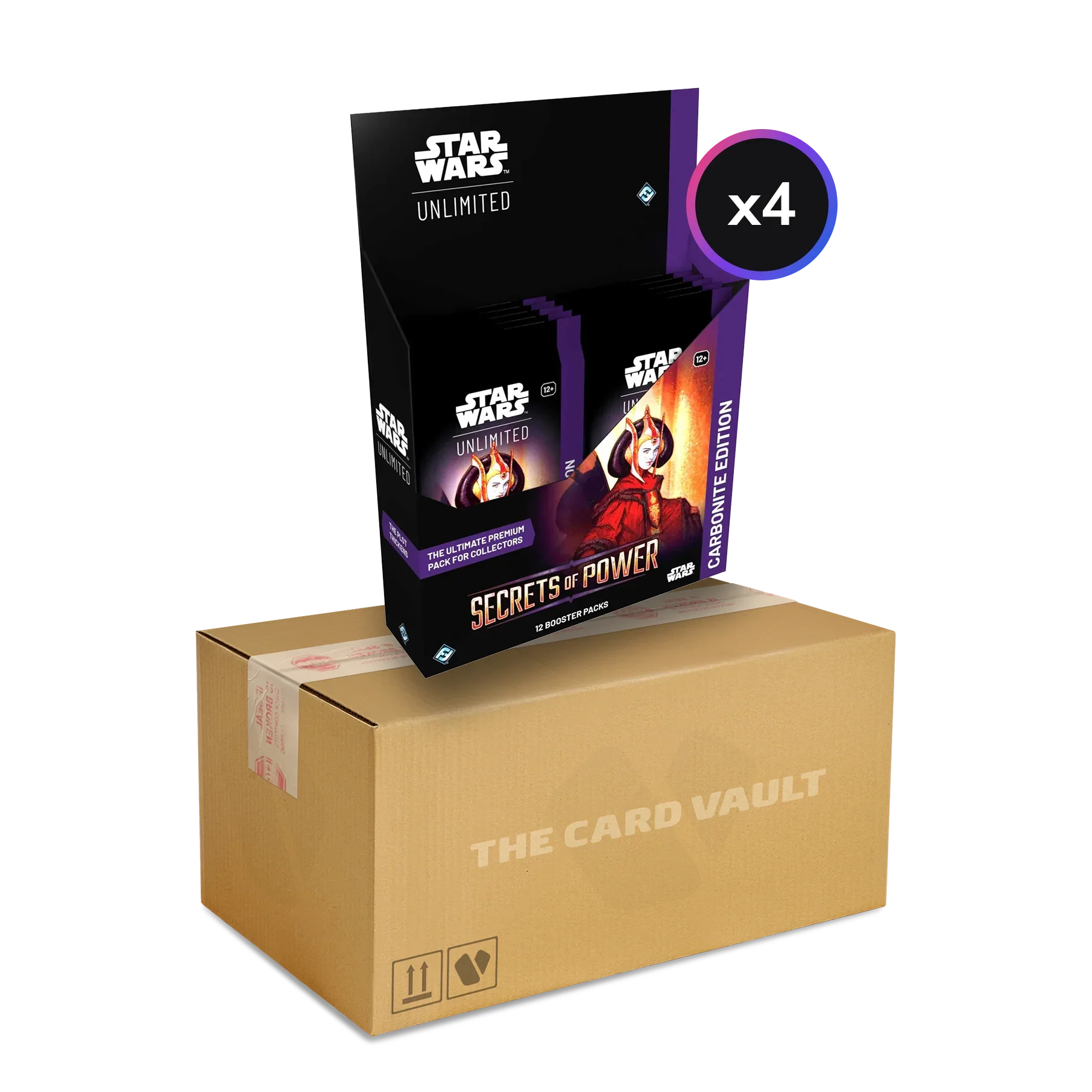 Each Secrets of Power Carbonite Display Case contains 4 booster boxes.